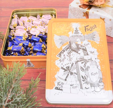 フィンランドで130年以上の歴史を持つチョコレートブランド。 2大看板の人気チョコレートが2種類入った、特別なクリスマス缶です。 1950年代にムーミンの作者トーベ・ヤンソンが、「ファッツェル」のためだけに描いた特別なアートを、クリスマスのエンボス缶に仕立てました。