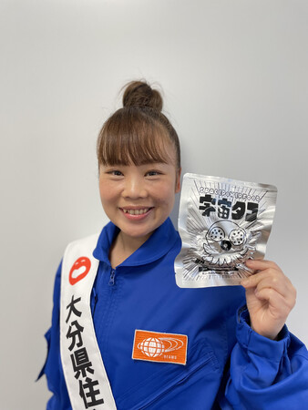 さらには、「テレビで大分空港がアジア初のスペースポートに認定というニュースを見て、宇宙食認定も狙えるような携行食品『宇宙タコ』を作りたい!と思いついてから、国東物産さんと研究を重ね約3年間で本日を迎えることができました。」と喜びを伝え、「当面は大分空港のショップにて販売をし、先々はアウトドアショップ、防災ショップ、自衛隊や官公庁に販路を拡大し、いずれはJAXAの宇宙日本食認定を目指したい」と、今後のビジョンを語りました。