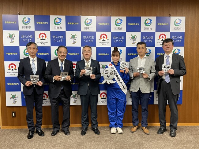 5月1日(月)発起人であり商品開発の中心となった、吉本興業所属で大分県住みますランナーである「爆走SAKI」が松井督治国東市長に表敬訪問を行い、国東市役所にて商品発表報告会&試食会を行いました。