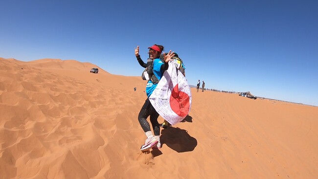 砂漠ランナーとしてのデビューとなった、2018年のサハラ砂漠マラソンでは、7日間分の食料や着替えなど必要な装備を背負って、砂漠や崖がある過酷な環境を走るサバイバルレースを見事走り切り、7日間で250kmを完走。