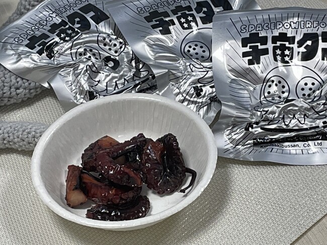 宇宙港・大分空港の所在地・国東市の地元特産のマダコを活用して開発した長期保存可能な「宇宙タコ」。