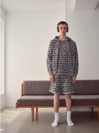 WAVEの象徴的なグレーを基調に両ブランドのロゴの総柄をジャガードで表現したパーカー、ショーツなど計4アイテムをリリース。