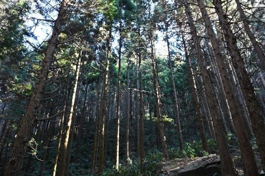 筑波山の南に位置する宝篋山(ほうきょうさん、標高461メートル)の中腹に広がる国有林です。1985年の「つくば万博」開催を機にマツクイムシ被害が広がった国有林に緑を取り戻そうと、朝日新聞社と森林文化協会が植樹募金を呼びかけ、全国約4万2千人から集めた募金をもとにヒノキなど約3万本を松の伐採跡地に植林したのがきっかけで開設しました。2025年に開設40年を迎えたのを機に、朝日新聞社は森の間伐や環境整備などの支援に一層力を入れることを決めています。