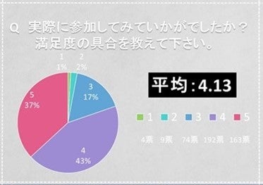 6)開催後の満足度調査では、平均満足度4.13(5点満点)を獲得