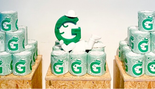 サーキュラー・エコノミーの推進を掲げる当社では、お客様から店頭で回収したお中元・お歳暮ギフトカタログを暮らしに役立つトイレットペーパーにリサイクルし、お客様にお渡しする取り組みを行っています。今年のお中元期に店頭で約14,000セットのギフトカタログを回収し、35,000個のトイレットペーパーにリサイクルしました。お歳暮センターではお客様に、当社の環境活動キャラクターのGREENさんが描かれた「大丸松坂屋オリジナルトイレットペーパー(1ロール)」をお渡しいたします。同時に、不要になったカタログの回収BOXを設置し、持参いただいたカタログを回収いたします。