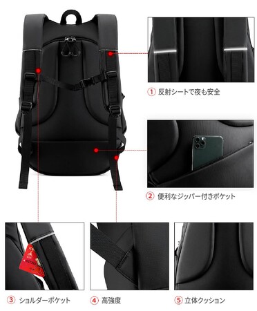 背中の負担を軽減!便利な収納ポケット付き