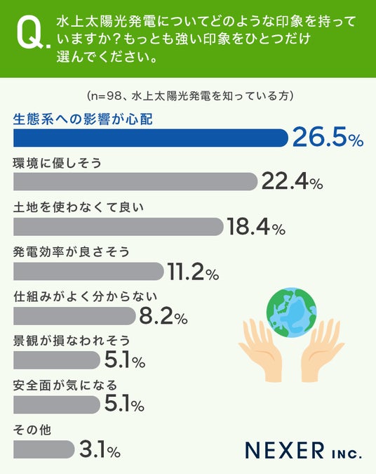 ■22.4%が、水上太陽光発電の印象は「環境に優しそう」