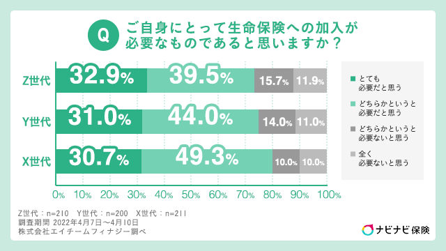株式会社エイチームのグループ会社である株式会社エイチームフィナジー(本社:大阪府大阪市、代表取締役社長:間瀬文雄)は、全国のX世代、Y世代、Z世代の男女621名を対象に「生命保険に関する意識調査」を実施しました。