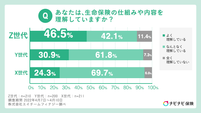 Z世代で46.5%の人が生命保険の仕組みや内容を「よく理解している」と回答