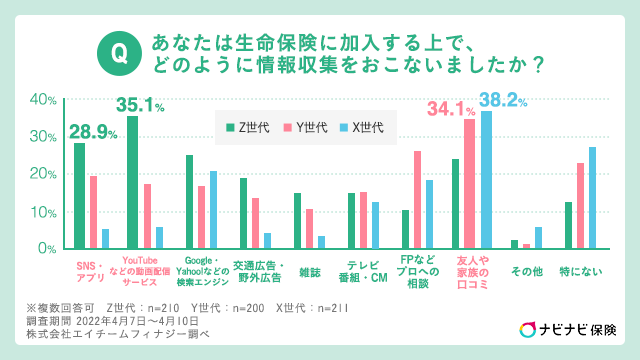 生命保険加入の情報収集は、Z世代はインターネットで、X、Y世代は口コミで