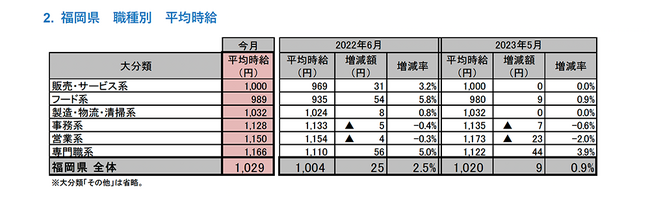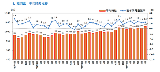 ■福岡県の平均時給は1,029円(前年同月1,004円、前月1,020円)