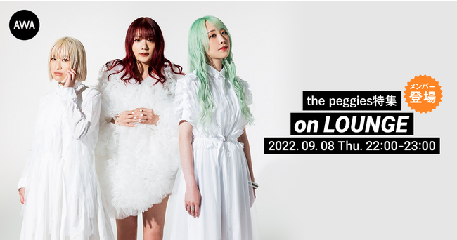 AWA株式会社(本社:東京都港区、代表取締役CEO:冨樫晃己)が運営する、サブスクリプション型(定額制)音楽ストリーミングサービス「AWA(アワ)」は、2022年9月8日(木) 22:00~23:00の1時間に渡り、メンバー全員がチャットd参加するthe peggiesの特集LOUNGE(ラウンジ)を開催いたします。