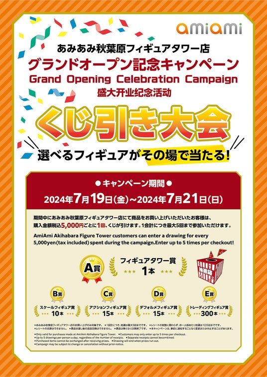 ホビー通販店「あみあみ」を運営する大網株式会社(本社:東京都文京区)は、2024年7月19日(金)に「あみあみ秋葉原フィギュアタワー店」をグランドオープンいたします。