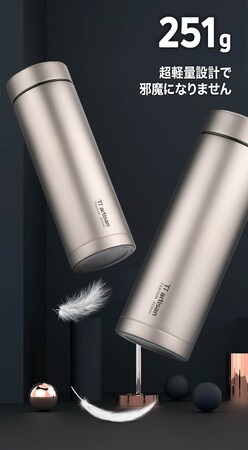 ● 熱を伝えにくいチタンと真空二重壁の構造で、飲み物の温度を長時間キープ。