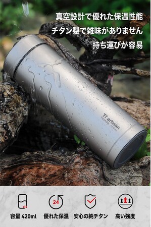 ● 飲み物をそのままの美味しさで: チタンは化学的に安定しており、飲み物の匂いや味を変えることなく美味しさをキープします。