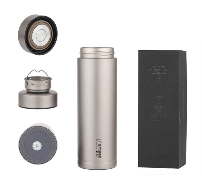アウトドアからオフィスまで。軽くて機能的な純チタン製 真空ボトル TiMug