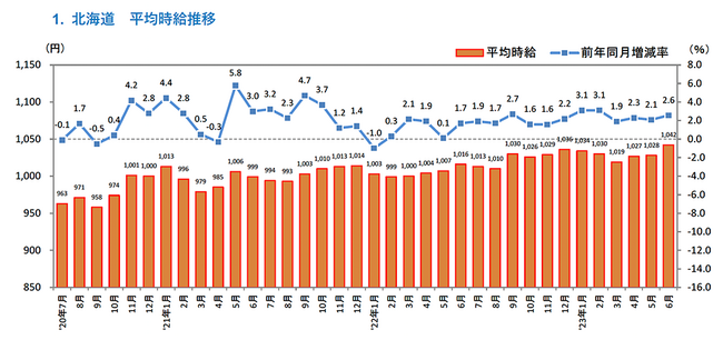 ■北海道の平均時給は1,042円(前年同月1,016円、前月1,028円)
