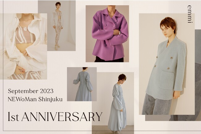 株式会社マッシュスタイルラボ(東京都千代田区/代表取締役社長 近藤広幸)が運営し、“クリアモード”をコンセプトに、ベーシック且つ洗練された大人のデイリーウェアとリラクシーなヨガウェアを展開する「emmi(エミ)」は、2023年9月に旗艦店であるNEWoMan新宿店のリニューアルオープン1周年を迎えます。