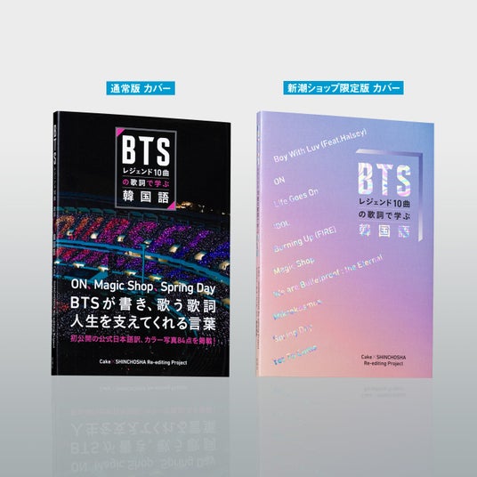 BTSが書き、歌う歌詞は、私たちの人生を支えてくれるメッセージ。初公開の公式日本語訳、読みやすい韓国語歌詞、ひらがなで読める発音、文法解説、書き込み式単語レッスンで「ファンに愛されている10曲」を完全解説した新刊書籍、『BTSレジェンド10曲の歌詞で学ぶ韓国語』を新潮社より発売いたします。