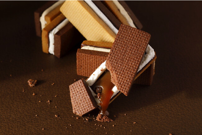 ホテルニューオータニの3ホテル(東京、幕張、大阪)では、ペストリーショップ「パティスリーSATSUKI」にて、クッキーにキャラメルソースとクリームをサンドした『チョコレートキャラメルサンド』を販売いたします。
