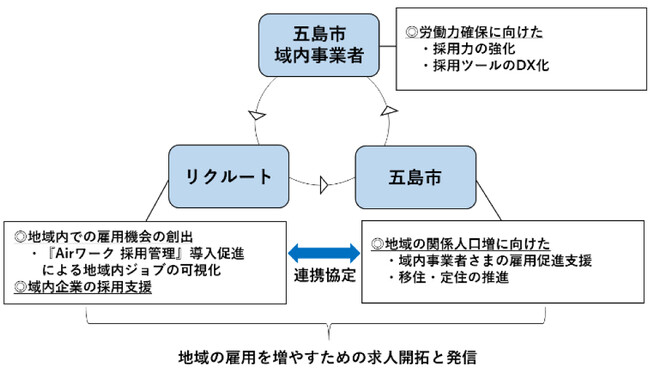 地域や中小企業においては、採用業務のデジタル化がまだまだ進んでいないという現状も鑑み、当社が提供する業務・経営支援サービスである「Air ビジネスツールズ」、および人材ソリューションのノウハウをご活用いただくことで、採用業務のデジタル化を進め、移住促進と地域定着、域内事業者の雇用促進により、五島市の地域活性化に貢献していきたいと考えています。
