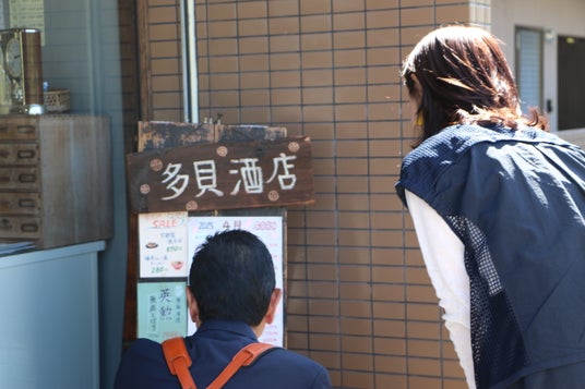 その後、長岡京で長年愛されてきた【多貝酒店】へ。店内に入るやいなや、三田村、試飲ができる痕跡を発見!