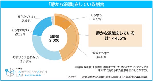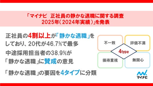 株式会社マイナビ(本社:東京都千代田区、代表取締役 社長執行役員:土屋芳明)は、20~59歳の正社員を対象に実施した「マイナビ 正社員の静かな退職に関する調査2025年(2024年実績)」の結果を発表しました。