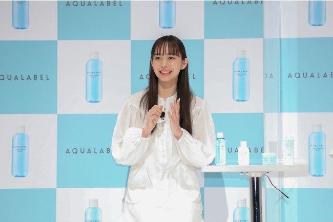 今回、アクアレーベルのCMに参加させていただけると聞いたときは本当に嬉しかったです。撮影では、実際にアクアレーベルを使用した時に感じた肌への浸透力や、つけた時の軽やかさ、心地よさが演技の中で伝わったらいいなと思って臨みました。