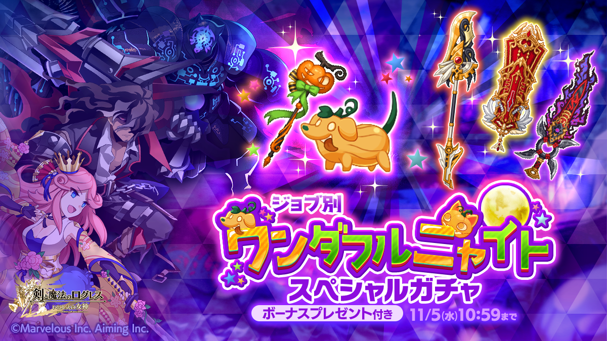 株式会社マーベラス(代表取締役社長:照井 慎一/所在地:東京都品川区)は、スマートフォン向け本格オンラインRPG『剣と魔法のログレス いにしえの女神』において、2025/10/22(水)に新イベント「Witching Hour・Sematary~死者の記憶~」のクエスト追加、および「ジョブ別 ワンダフルニャイトスペシャルガチャ」の販売を含むアップデートを行ったことをお知らせいたします。