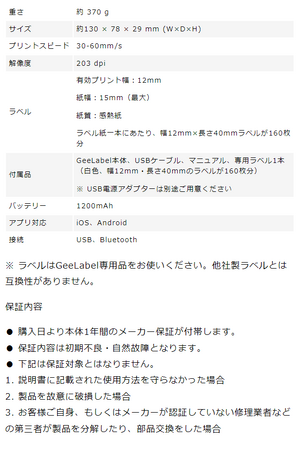 ● サーマル式(感熱式)でインク不用、軽量ラベルプリンター