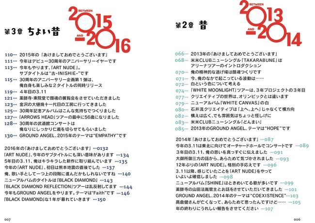 2015 年の「あけましておめでとうございます」/今年はデビュー 30 周年のアニバーサリー・イヤー/今年もやります、 ART NUDE 。サブタイトルは“古-INISHIE-”です。/30 周年のアニバーサリー企画第一弾は、俺自身も楽しみな2タイトルの同時リリース/4 年目の 3.11 ほか