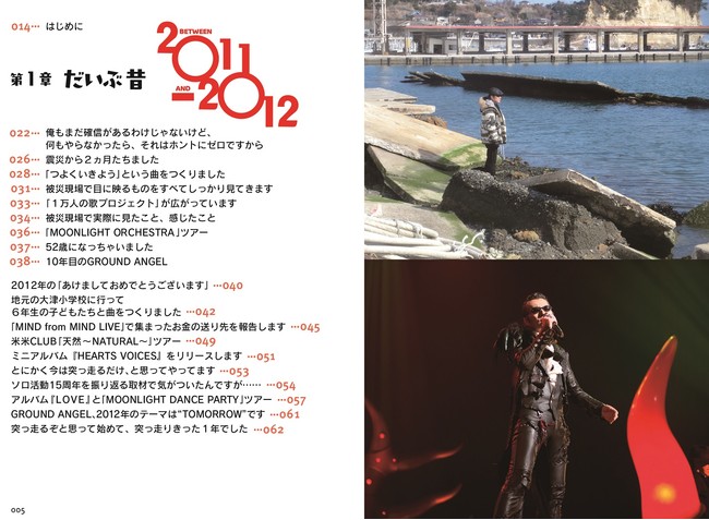 今回、第1章の「俺もまだ確信があるわけじゃないけど、何もやらなかったら、それはホントにゼロですから」から「10年目のGROUND ANGEL」まで、“2011年”の出来事が書かれたページをすべて公開。2001年9月11日にアメリカで起きた同時多発テロをきっかけに立ち上げた「GROUND ANGEL」の活動を礎に、東日本大震災で新たなプロジェクトを立ち上げた石井竜也が、積極的な支援を続ける意味、そして、ときに「自分が何もつくる気がしなくなるような精神状況に陥ってしまうことがいちばん怖かった」と悩み苦しんだことなど、赤裸々に綴られています。ぜひこの機会に石井竜也の本音と理想に触れて下さい。