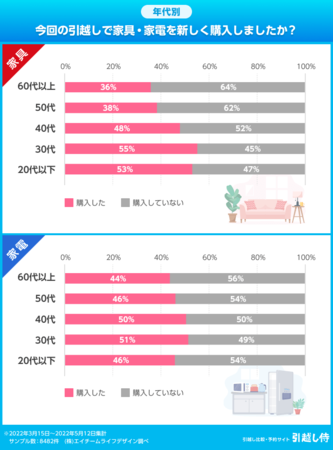 株式会社エイチームのグループ会社である株式会社エイチームライフデザイン(本社:愛知県名古屋市、代表取締役:間瀬文雄)は、同社が運営する引っ越しの見積もり比較サイト『引越し侍』の利用者に対して「コロナ禍の引越しの家具・家電事情」に関するアンケートを実施しました。(https://hikkoshizamurai.jp/report/report-20220613)