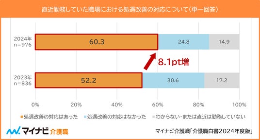 ◆「処遇改善の対応があった」は6割で、前年比8.1pt増