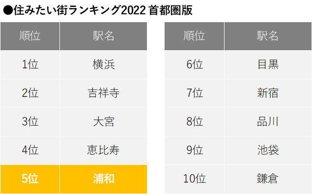 「住みたい街ランキング2022 首都圏版」では、浦和は5年連続トップ10にランクインしており、2022年は過去最高順位である”5位”と、年々街の人気が高まっています。