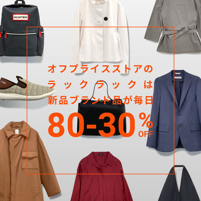 ラックラックは様々な理由で販売時期を過ぎてしまった商品を買取り、捨ててしまうにはもったいない新品の商品を80-30%OFFで販売するオフプライスストアです。価値あるモノとの驚きの出会いを、是非、お楽しみください。