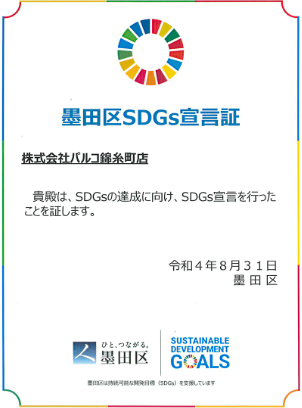 錦糸町パルコは、2022年8月31日に「墨田区SDGs宣言」申請を行い、受理されました。