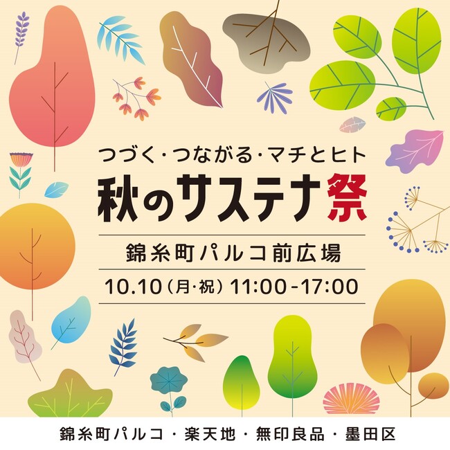 株式会社東京楽天地(本店:東京都墨田区、代表取締役 社長執行役員 浦井敏之、以下東京楽天地)と株式会社パルコ(本部:東京都渋谷区、代表取締役兼社長執行役員 牧山浩三)は、10月10日(月)スポーツの日に、楽天地ビル1階、錦糸町パルコ店頭にて「つづく・つながる・マチとヒト 秋のサステナ祭」を開催いたします。