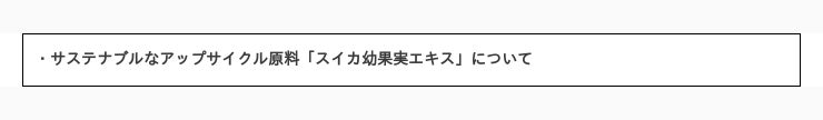 ※5 スイカ果実エキス、ヨーロッパブナ芽エキス、オリーブ葉エキス、ユキノシタエキス、メリッサ葉エキス、ウメ果実エキス、アロエベラ葉エキス、ラベンダー花エキス、イチョウ葉エキス、ヨモギ葉エキス、レモン果汁エキス、ハトムギ種子エキス、ユズ果実エキス、シャクヤク根エキス、セージ葉エキス、ローズマリー葉エキス、スイカヅラ花エキス、ダイウイキョウ果実エキス、ウスニアバルバタエキス、メボウキ花/葉エキス
