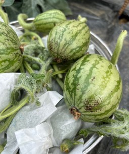 一般的にスイカは一株に5~6個実をつけ、そのうち1~2個を収穫用として育て、残りの実は幼い時に摘果目的で廃棄されます。その幼果実の廃棄量は年間6万トンと推定されています。これまでは廃棄されていたスイカ幼果実ですが、1か月放置されているものを調べてみると、中身はまだみずみずしく水分や栄養を蓄えていることが分かりました。この事実をきっかけに美容成分として開発が進み、研究に10年もの歳月を経てアップサイクル原料に生まれ変わりました。Mitea ORGANICは、化粧品原料として初めて「スイカ幼果実エキス」を採用しました。