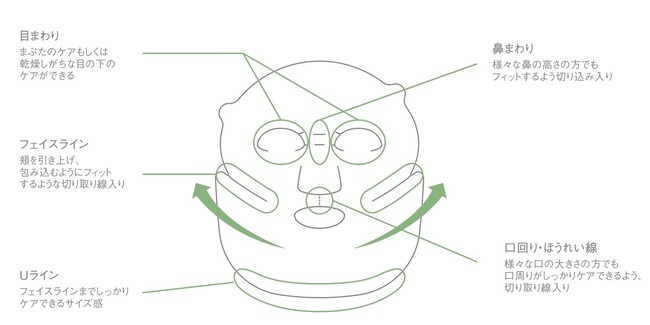 肌のすみずみまで美容液で満たせるよう、シートマスクの形状にもこだわった高密着シート。