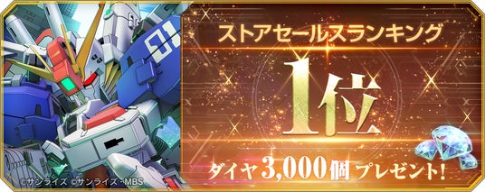 ストアセールスランキング1位を記念して、ダイヤ3,000個を全員へプレゼント!