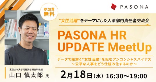 株式会社パソナは、人事部門責任者交流会、「PASONA HR UPDATE MeetUp データで紐解く“女性活躍”を阻むアンコンシャスバイアス~公平な人事をどう仕組み化するのか~」を2月18日(水)に開催いたします。