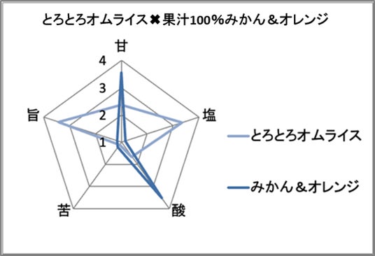 中でも注目したいのが、「玄米茶」と比較して「スーパーサイダーファイバー」のほうが高い相性度を示した点です。酸味や炭酸の刺激がしっかりと感じられる飲料は、濃厚でとろとろとしたオムライスの味わいをすっきりと引き締め、後味のキレを高める効果があることが分かりました。味覚センサーAIの数値分析から、定番とは異なる飲料との組み合わせでも、オムライスの味わいをより楽しめる可能性が示されています。