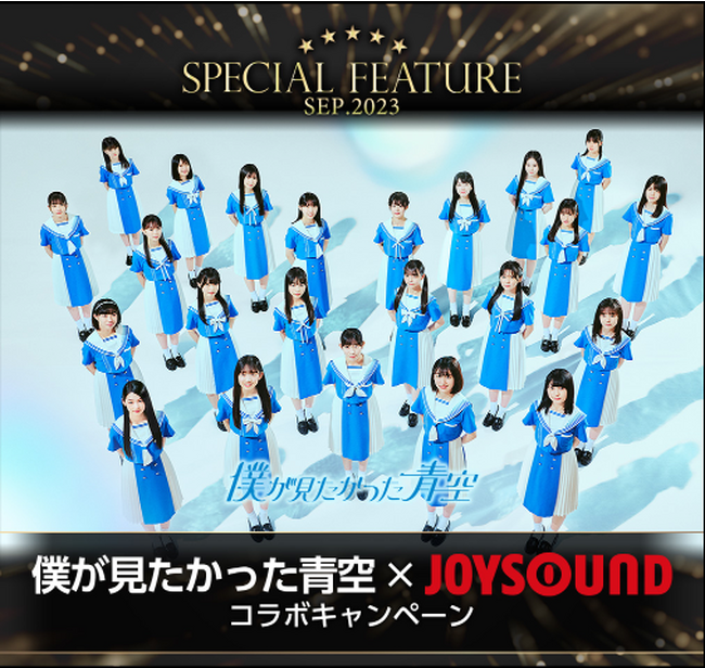 株式会社エクシングが展開する通信カラオケ「JOYSOUND」が、毎月旬なアーティストをピックアップする“SPECIAL FEATURE”。9月度は、アイドルグループ「乃木坂46」の“公式ライバル”グループとして8月30日(水)にデビューシングル『青空について考える』をリリースした僕が見たかった青空が登場!JOYSOUNDでは、本リリースを記念して、オリジナルキャンバスボードが当たる「僕が見たかった青空×JOYSOUND コラボキャンペーン」を、本日9月1日(金)からスタートします。