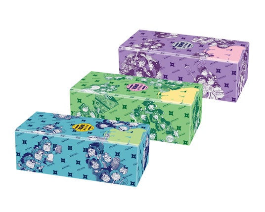 BOX3.のスペシャルデザインケースCは忍術学園の先生のイラストを中心にしたパープルデザイン。BOX限定アクリルスタンドCは、『完全版 小説 落第忍者乱太郎 ドクタケ忍者隊 最強の軍師』の表紙イラストをアクスタ化。特典クリアカードBは雑渡昆奈門、諸泉尊奈門です。