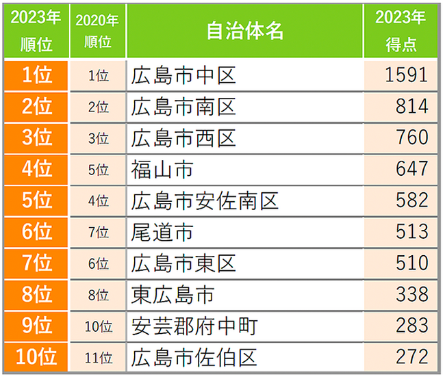 株式会社リクルート(本社:東京都千代田区 代表取締役社長:北村 吉弘)では、広島県に居住している人を対象に実施した「住みたい街ランキング2023 広島県版/広島市民版」を集計しましたので、概要をご報告いたします。