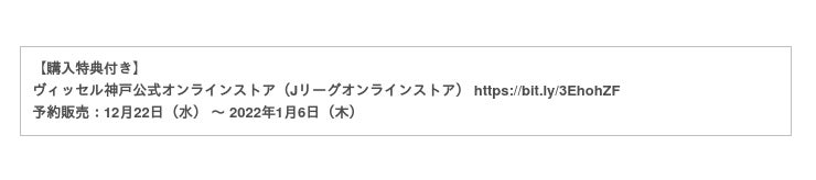 ヴィッセル神戸公式オンラインストア(J リーグオンラインストア)でご予約の方は、ヴィッセル神戸限定カバーとなっており、通常版のカバーとは異なるものでファン必携となっており、オリジナルポストカードがついてきます。ヴィッセル神戸限定予約の締め切りは 1 月 6 日(木)となりますので、ぜひお急ぎください。