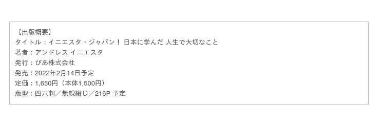『イニエスタ・ジャパン! 日本に学んだ 人生で大切なこと』ご予約
