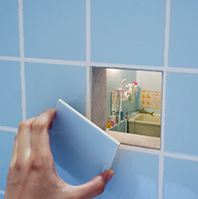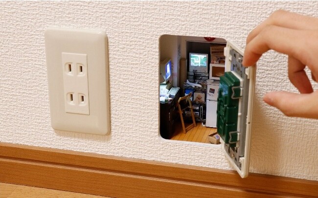 コンセントの横に広がる「こびとの秘密基地」や「こびとのベランダ」は生活感溢れる仕上がりになっています。作品の裏側までじっくりみていただきたい作品の展示や、実際の生活空間の中にひっそりとこびとの生活が隠れているような演出で作品を展示していきます。